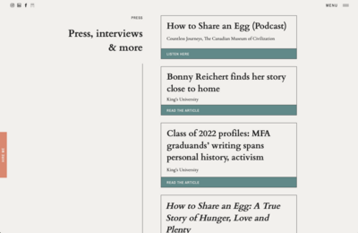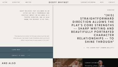 Typically my calling card (landing page) sites flow on one page - but to celebrate Genny's multihyphenate status and to help guide the user we broke it into 2 smaller pages.